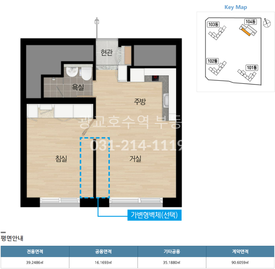 안녕하세요! 오늘은 더샵 광교 레이크시티 오피스텔의 39 타입을 소개해 드리겠습니다.