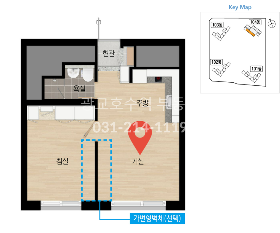또한, 104동에 위치해 있어 커뮤니티 시설과 가장 가까운 동으로, 편의시설을 쉽게 이용할 수 있는 장점이 있습니다.